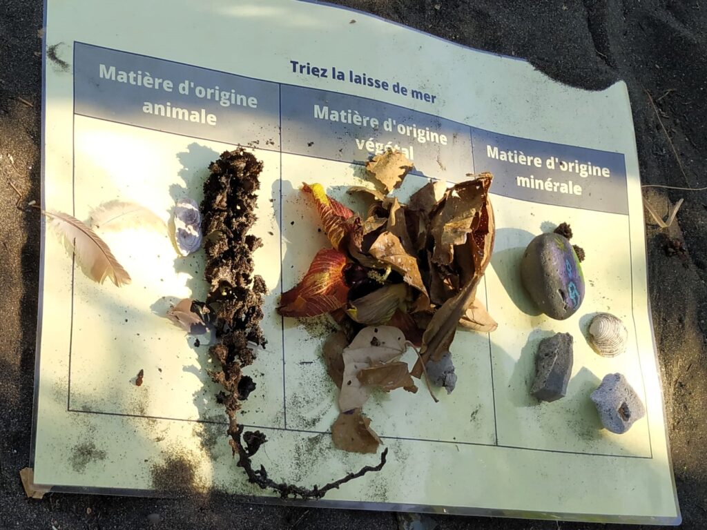 Les élèves restés sur la plage n’étaient pas en reste. Mme LY, professeure de SVT, leur avait préparé des activités pour leur faire connaître la laisse de mer et ses enjeux. Les enfants ont donc procédé au tri des matières d’origine animale, végétale et minérale, mais ont aussi malheureusement pu constater la présence de déchets d’origine humaine, source de nuisance pour l’environnement.