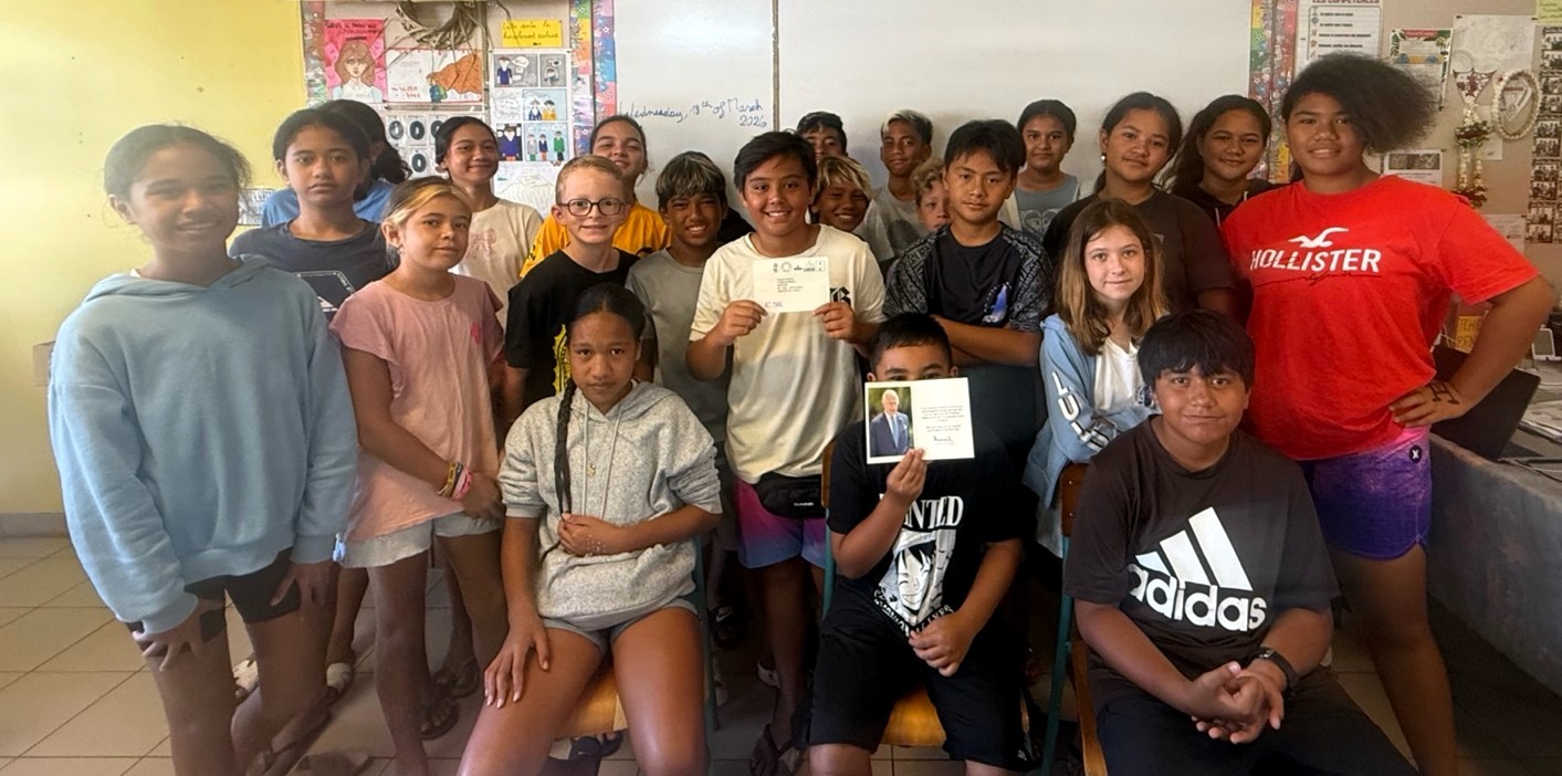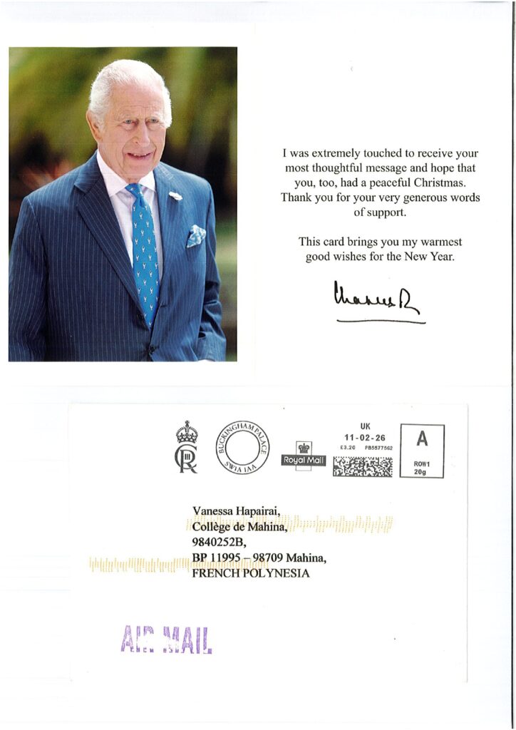 En décembre dernier, les élèves des classes de 6ème Tuora et de 6ème Faatura du collège de Mahina se sont lancés dans un projet aussi ambitieux que passionant : écrire des lettres au roi Charles III afin de lui souhaiter un joyeux Noël.